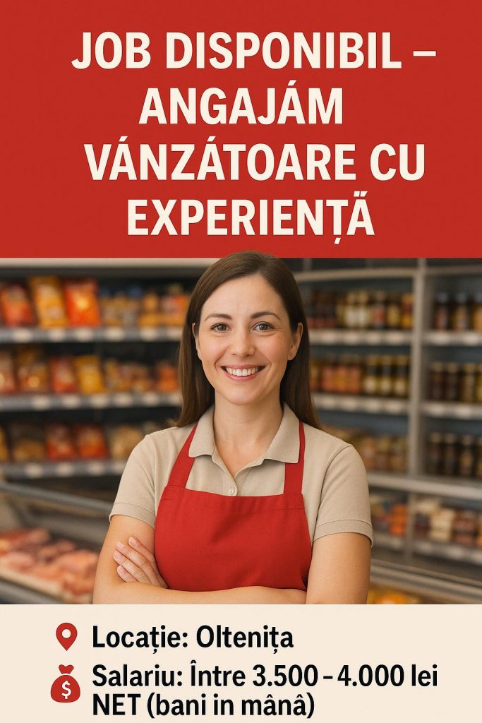 Prima pagină / JOB / JOB OLTENITA – ANGAJĂM VÂNZĂTOARE CU EXPERIENȚĂ