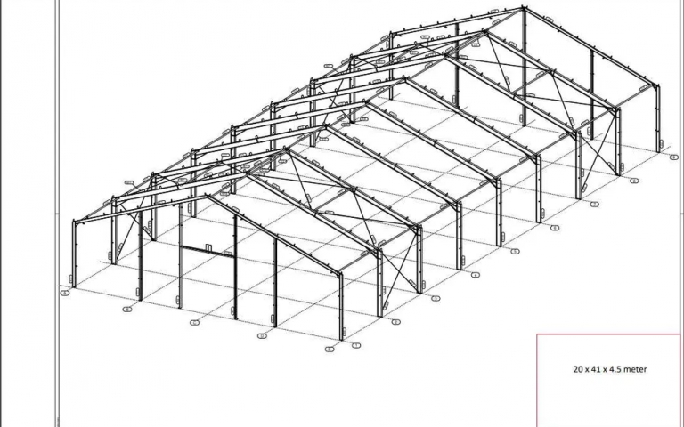 De Vânzare: Hală din Oțel 820 mp | Producție 2022 📌 Dimensiuni: 20m x 41m (aprox. 820 mp)📌 Înălțime creastă: 8,14 m | Înălțime jgheab: 4,5 m📌 Material: Oțel acoperit cu pulbere, culoare antracit📌 Fabricat în 2022 de Handelsonderneming (Olanda)📌 Standard EN1090 (Certificat disponibil după cumpărare) 🔹 Caracteristici:✅ Desene de asamblare și plan de ancorare✅ Elemente numerotate conform planului de montaj✅ Înclinație acoperiș: 20°✅ Include toate …