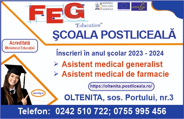 Scoala Postliceala FEG „Education” Oltenita lnscrieripentru anul scolar 2023 – 2024la specializarile: Asistent medical generalist Asistent medical de farmacie ÎNSCRIE-TE AICI – CLICK