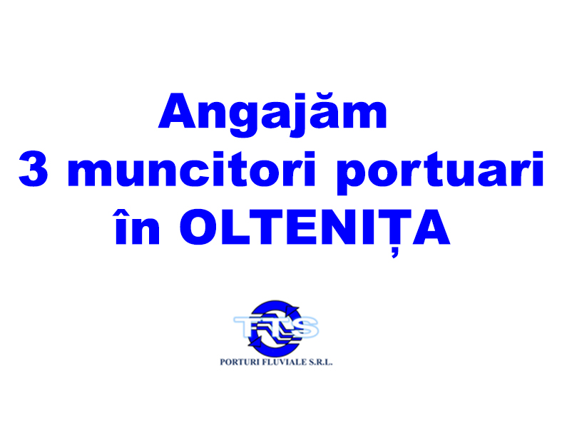 TTS PORTURI FLUVIALE SRL, cu Punctul de lucru Port Oltenita, situat la dana nr 1 si dana nr 2, angajeaza 3 muncitori portuari